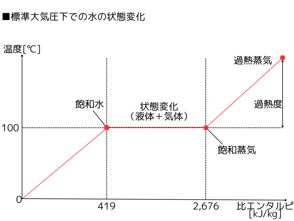 飽和水の場合、まだ蒸気にはなっていないので、この熱量は温度を上げるための顕熱だけです。
