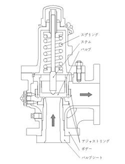 逃がし弁は設定圧力以上で作動し膨張した水を逃がします。以下は逃し弁のイメージです。