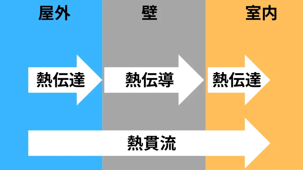 このように壁の内部を熱が通過することから、「熱通過」とも呼ばれています。